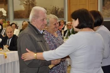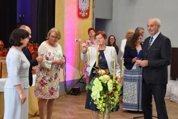 Pary małżeńskie, które obchodziły w ubiegłym roku Złote i Diamentowe Gody, 24 maja w Grojcu przyjęły podziękowania, gratulacje i życzenia.