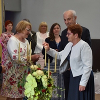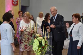 Prowadząca ceremonię Daria Janowiec z Ośrodka Kultury, Sportu i Rekreacji Gminy Oświęcim poprosiła o zapalenie symbolicznych świec, „których płomień symbolizuje gorące uczucie i ciepło domowego ogniska”, Janinę i Stanisława Chowańców.