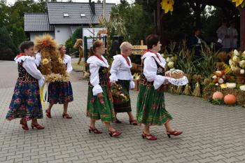 Uroczystość rozpoczęła się Mszą Świętą polową przy OSP Harmęże, której przewodniczył ks. Arkadiusz Bąk. Po nabożeństwie sołtys Harmęż, Adam Zieliński serdecznie przywitał wszystkich zebranych gości i mieszkańców. Następnie głos zabrał wójt gminy Oświęcim Mirosław Smolarek, otwierając oficjalną część dożynek.