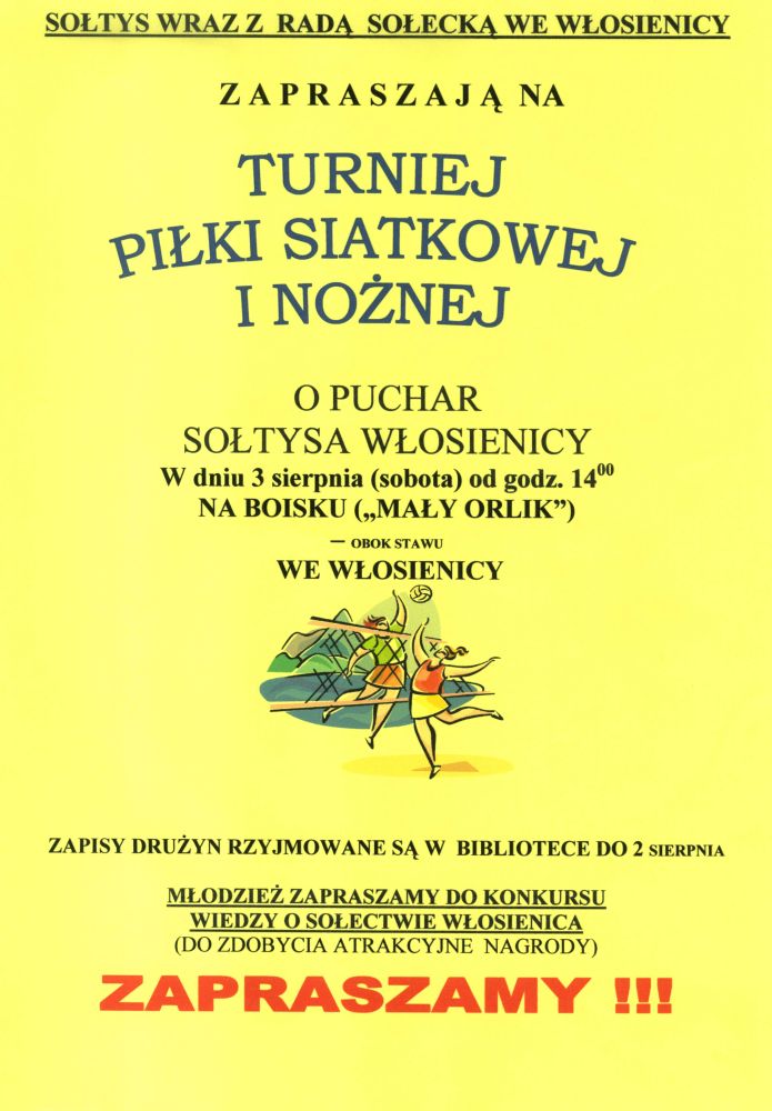 Turniej piłki siatkowej i nożnej o Puchar Sołtysa Włosienicy - 3 sierpnia 2013, od godz.14:00 na boisku we Włosienicy ...